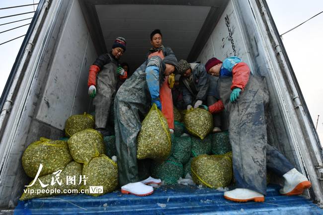 2021年3月21日,约6万斤蛤蜊种苗在山东省青岛市城阳区红岛渔港装船准备投放到养殖区,恢复因海星爆发中断的春季贝类底播作业。 (自媒体www.9y9y.com)