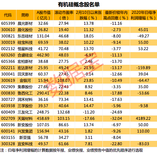 开年后,有机硅概念整体呈现震荡上行趋势,指数中多只成份股逆市上涨。2月10日至今,有机硅概念指数涨幅8.08%,大幅跑赢同期大盘。