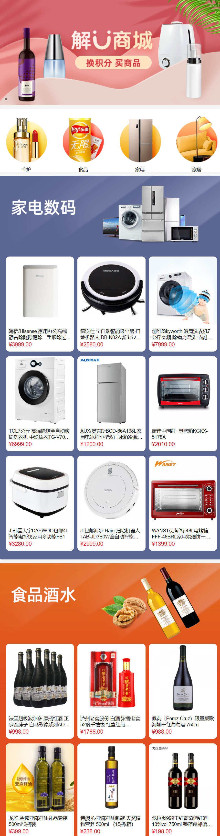 商城所有商品均由受让债权的第三方商户提供,出借人可以按照冲提差1:1的比例,自主自愿申请将所持债权兑换为商城积分进行购物。商城商品覆盖了各类品牌及品种,包括日用品、小家电等各类商品,具体出借人可登录点融投资App首页进入“解U商城”查看。点融平台只负责引入项目,提供出借人服务、债权对接处理,不参与交易。