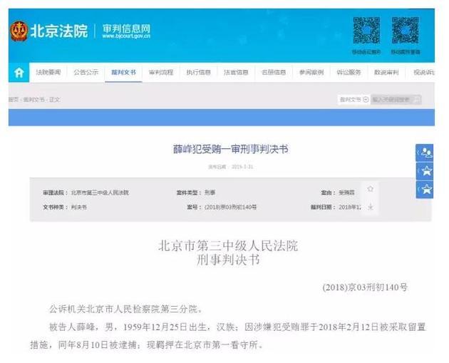 近日,根据北京法院审判信息网披露的北京市第三中级人民法院刑事判决书显示,曾任建设银行山东分行行长的薛峰以受贿罪判处有期徒刑13年,并处罚金人民币130万元,并扣押、冻结在案的钱款约916.48万元,依法予以没收,上缴国库。