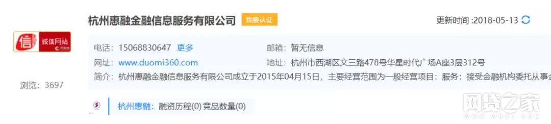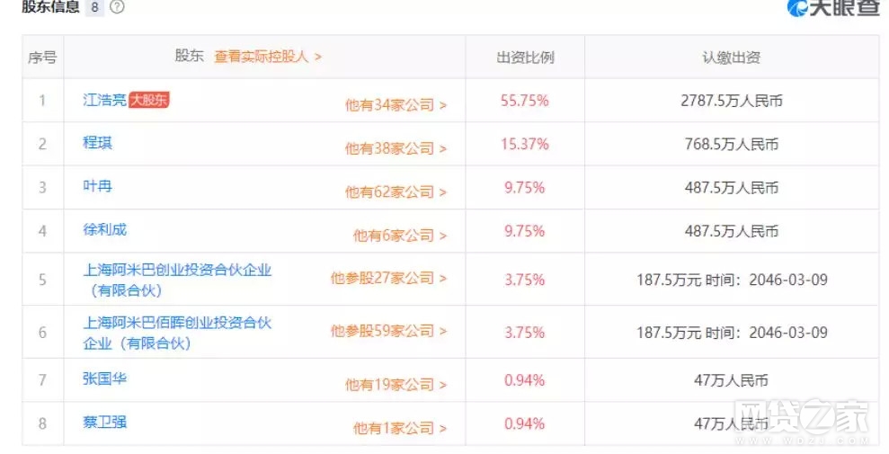 多米金融是杭州惠金融信息服务有限公司旗下互联网金融平台,其母公司同样是华夏融创企业管理咨询(北京)有限公司,江浩亮作为实际控制人,持股比例达55.75%。