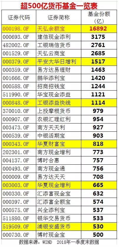 从单只货币基金规模来看,10只货币基金规模超过1000亿元,除了近1.7万亿的余额宝之外,建信现金添利的规模最大,超过3000亿元,其他还有8只1000亿到3000亿之间的超大型货币基金。
