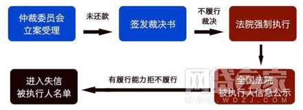 需要特别注意的是,互联网仲裁作出的裁决书效力等同法院判决书,在借款人不履行生效裁决书时,申请执行人可凭该生效裁决书及其它法院规定的材料向被执行人住所地或者被执行的财产所在地的中级人民法院申请强制执行。