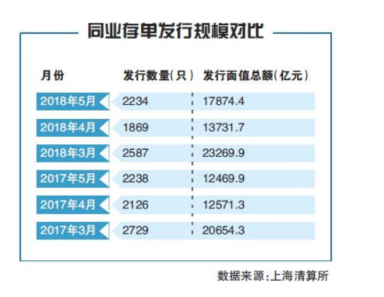 作为银行尤其是中小银行重要负债工具之一的同业存单,虽然近一年多受到严监管的约束,但发行规模尚未出现大幅收缩。据上海清算所数据显示,截至5月28日,同业存单托管余额为8.76万亿元,仍处于历史较高水平;当月发行2234只,规模达1.79万亿元,超过1、2、4月水平。前4个月同业存单发行量分别为1.43万亿元、1.48万亿元、2.33万亿元和1.37万亿元,其中仅有3月因为临近一季度考核所以出现明显增长。