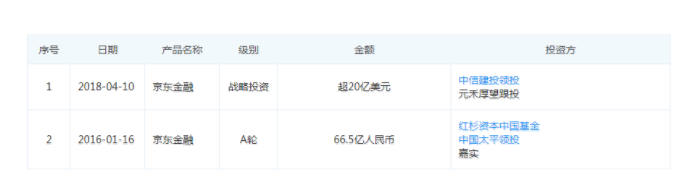 企查查信息显示,该公司目前已完成两轮融资。2018年4月,一位接近京东金融的投资行业人士向雷帝触网证实,京东金融已接近完成新一轮超20亿美元的融资。这一轮融资完成后,京东金融的估值将超过200亿美元。