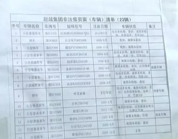 超越集团非法集资车辆清单