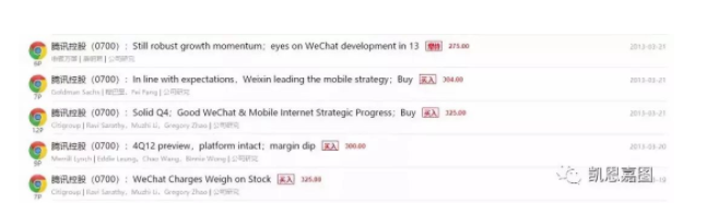 2013年初,微信在移动端IM的统治地位初现端倪,市场开始注意到微信巨大的增长潜力,这一时期几乎每家投行研报的侧重点都是微信和它巨大的潜力。2013年全年,腾讯的利润增速只有21%,但是股价却上涨了99.3%,微信带来了显著的估值提升。
