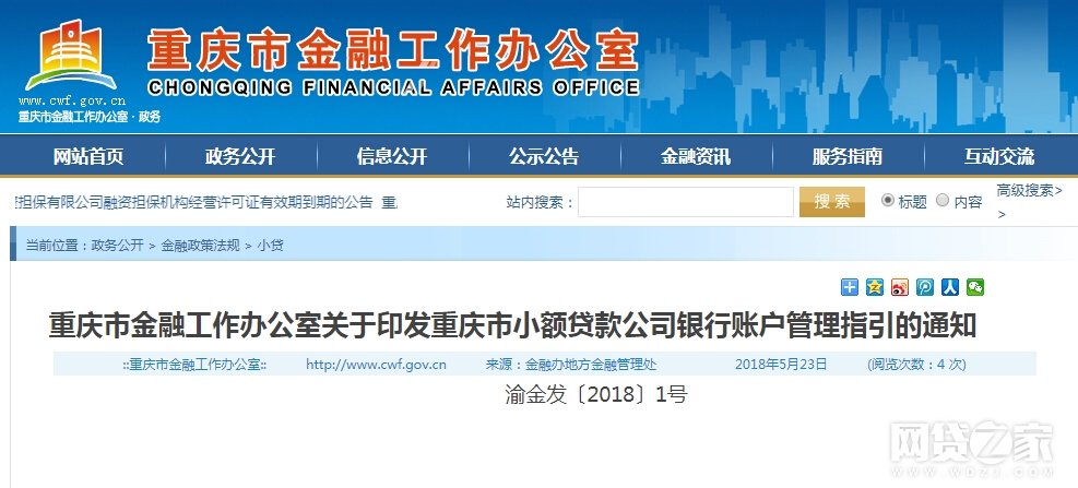 转载请标注:信息网——重庆金融办下发小额贷款公司银行账户管理指引