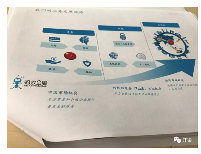 有媒体获得的一份融资文件显示,蚂蚁金服未来的业务发展战略从为中国市场消费者和小微企业提供普惠金服服务,转向依靠科技提供服务,并向全球市场迈进。