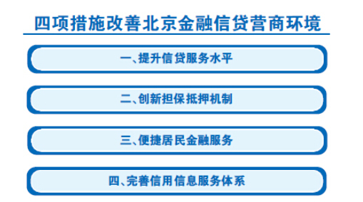 除了针对知识产权质押融资的优惠政策外,北京商报记者注意到,为了改善小微企业融资问题,3月14日,北京市金融局会同人民银行营业管理部和北京银监局发布的《关于进一步优化金融信贷营商环境的意见》,从提升信贷服务水平、创新担保抵押机制、便捷居民金融服务、完善信用信息服务体系四个方面有效改善北京的金融信贷营商环境。