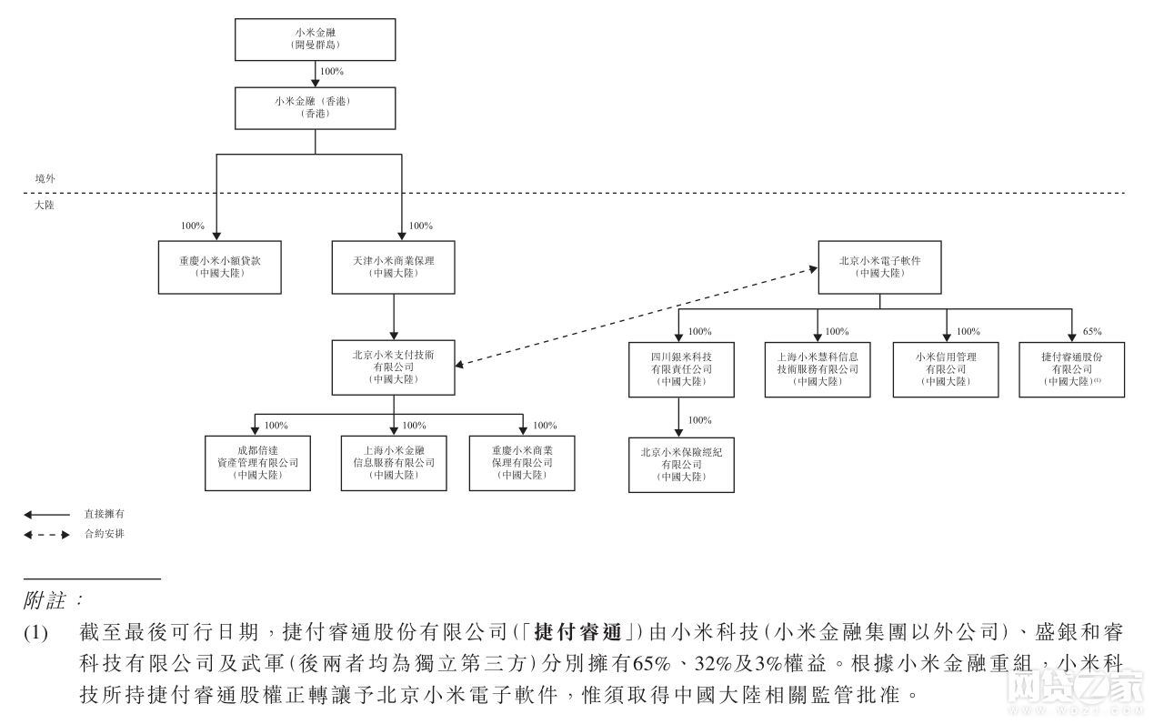 招股书提到:“为精简金融相关业务的各经营实体,并在未来可将小米金融完全自本集团分拆,使其不再为本集团的附属公司,我们已完成小米金融重组。”