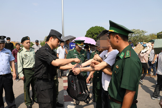 玉林警方到东兴口岸交接嫌疑人。玉林市公安局供图