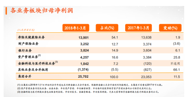 而去年亏损的金融科技和医疗科技业务,今年一季度也实现盈利18.4亿元,成为一季报的亮点。该板块包括,互联网金融龙头陆金所控股、医疗健康生态系统“平安好医生”、中小企业金融提供商“金融一账通”、在线健康保险公司“平安医保科技”和汽车服务应用软件汽车之家。