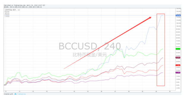 但是,这其中最“秀”的还是比特币现金——4月13日至今,已经暴涨120%,将其他数字货币齐齐甩在身后。在过去两周内,瑞波币涨幅达85%,以太币涨幅达65%。目前,比特币现金报1520美元,日内涨超10%。