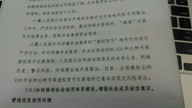 同时,央行对涉嫌非法集资的“虚拟货币”相关行为进行严厉打击,针对涉嫌非法集资、非法证券活动的IC0和比特币等虚拟货币交易场所,人民银行会同相关部委及时发布公告,明确态度、警示风险,并部署各地开展整治,目前,全国摸排出的ICO平台和比特币等虚拟货币交易场所已基本实现无风险退出。