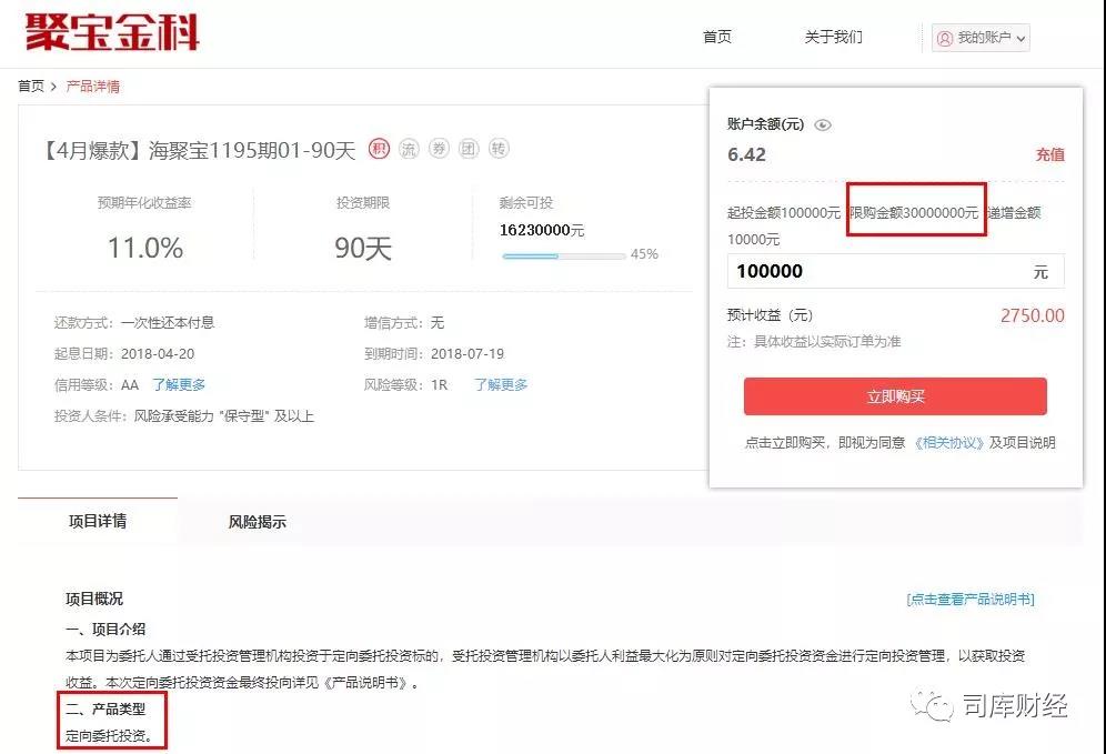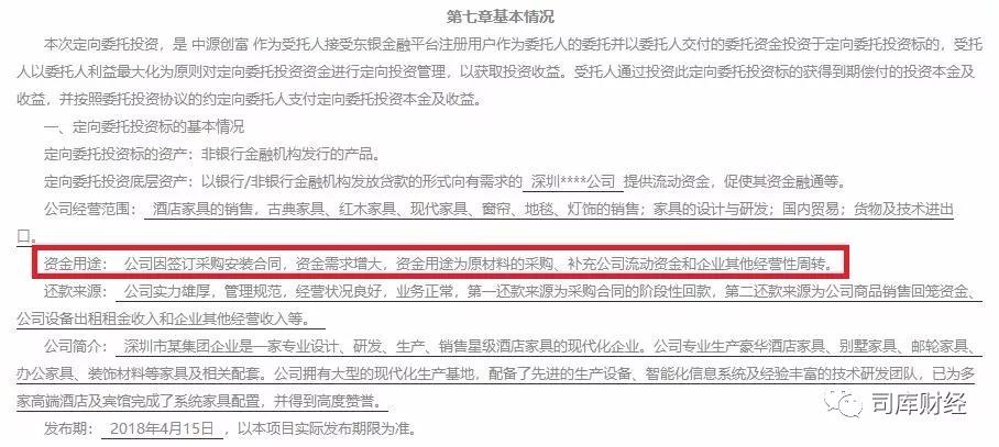 司库财经了解到,定向委托投资本质上是平台将资金投向包含信托收益权、资管计划等资产在内的非标固收市场,而根据聚宝匯平台的产品说明书,投资人资金最终投向有借款需求的企业。具体来看,“定向委托投资标的”是委托人通过受托投资管理机构投资于定向委托投资标的,受托投资管理机构以委托人利益最大化为原则对定向委托投资资金进行定向投资管理,以获取投资收益。