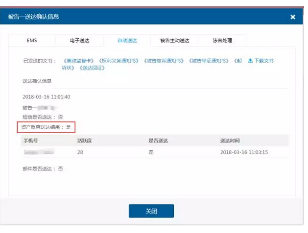 弹屏短信无法被拦截,以对话框的形式出现在当事人的手机页面,实时可靠,当事人须点击“关闭”才能继续使用手机,确保当事人已阅读电子送达内容。