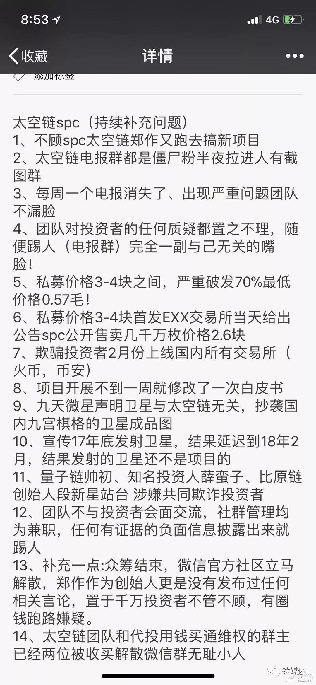 一切都要从2018年1月15日晚11点20分,距离太空链于交易所上币的几个小时前,一条震惊太空链核心社区的微信告知函说起。