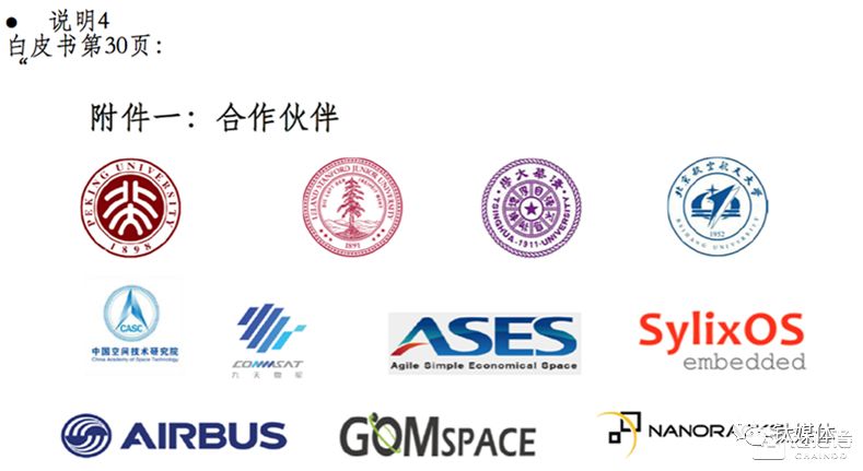 在合作伙伴一栏,更是进行了一次大换血。被删除的合作伙伴包括:北京大学、斯坦福大学、清华大学、北京航空航天大学、中国空间技术研究院、九天微星、上海埃依斯有限责任公司、ASES、Airbus空中客车集团、SpaceX、Gomspace、Spacetech GMBH、达华智能、英国航天局、长城工业,与之前版本的白皮书存在巨大的宣传内容偏差。