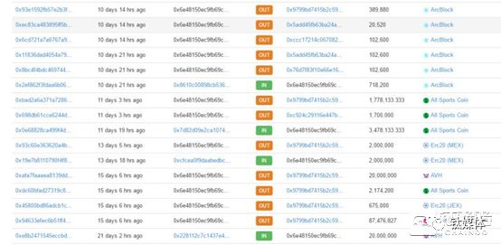 在上述图列出的ETH流向中,目标代币均在2017年12月底至2018年2月底期间进行了私募,其中Arcblock私募时间是2月底、AllSportsCoin在2月初、CANDY则在一月底。