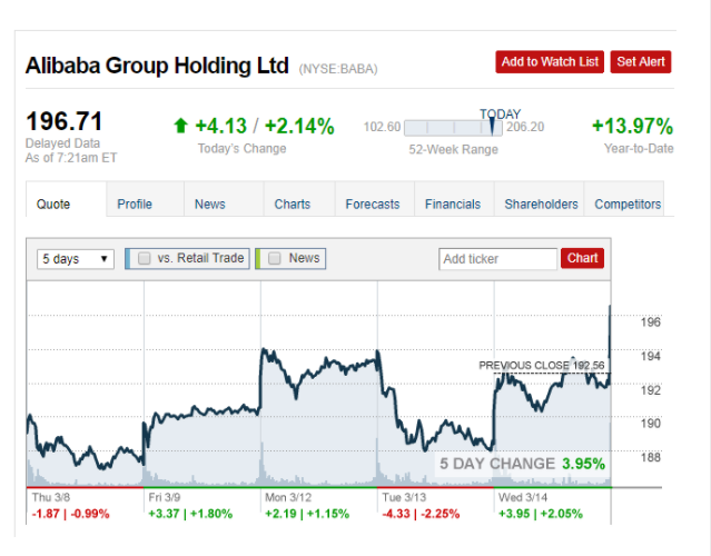 盘前股价涨逾3% 媒体:阿里巴巴在研究A股上市