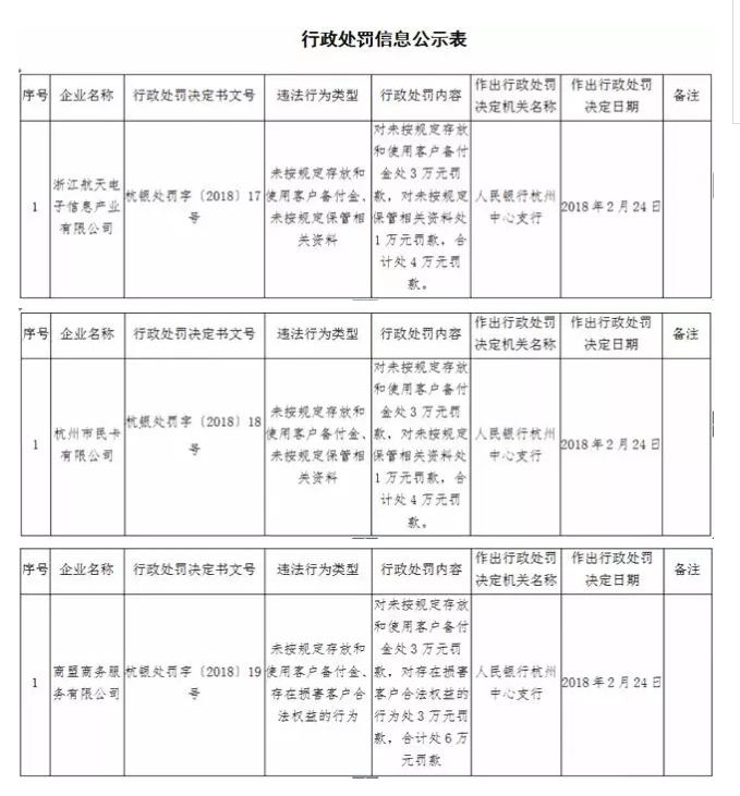 转载请标注:信息网——违规挪用客户备付金 这3家支付机构领央行罚单