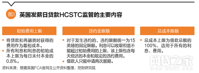 从2006年到2012年,英国发薪日贷款的规模从最初的3亿英镑激增到37亿英镑,然而个别贷款年利率超过3000%的高息费问题也引起了监管部门的高度关注。2014年4月1日,英国金融行为监管局(FCA)发布了《消费贷款管理细则》,该规定自2015年1月起正式实施,专门针对高成本短期信贷(HCSTC)价格上限做了规定,其中明确的监管措施包括引入了风险警示、限制再贷款次数以及使用连续支付授权(CPA)等。其内容主要包括(图3):