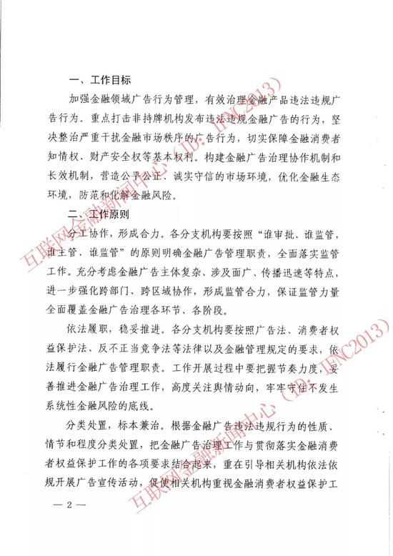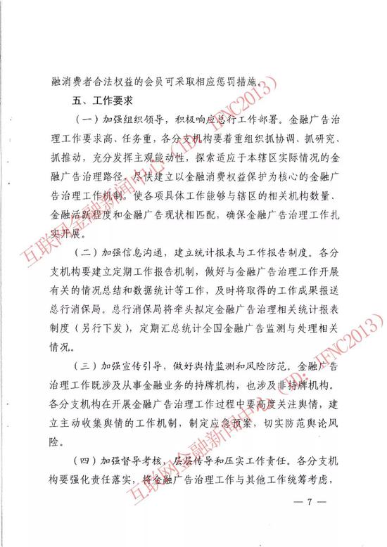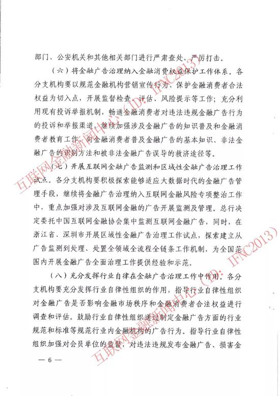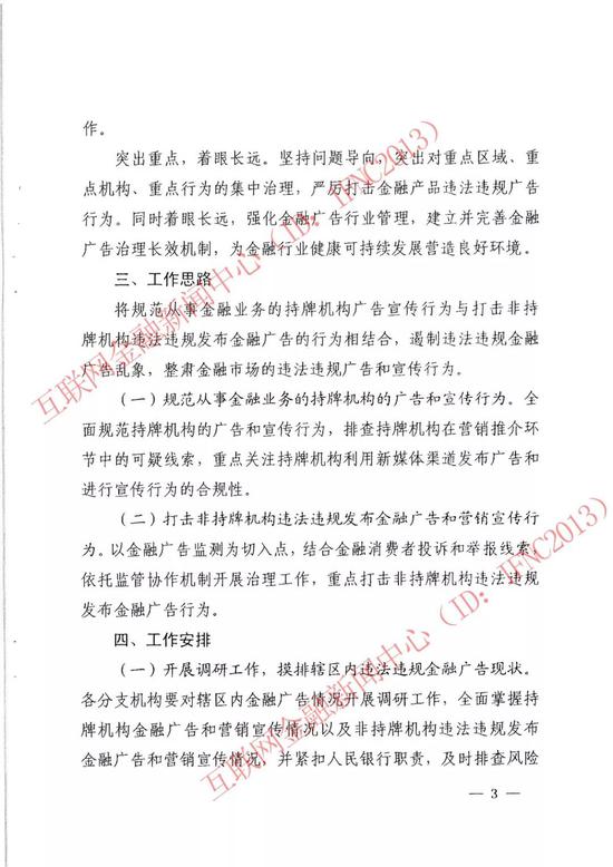 此外,还将开展互联网金融广告监测和区域性金融广告治理工作试点。各分支机构要积极探索能够适应大数据时代的金融广告管理手段,继续将金融广告治理纳入互联网金融风险专项整治工作中,重点加强对涉及互联网金融的广告开展监测及管理。