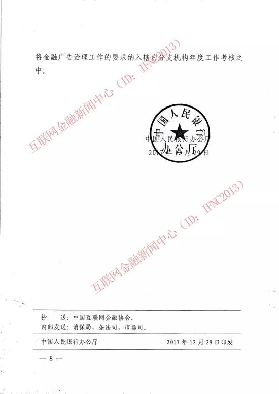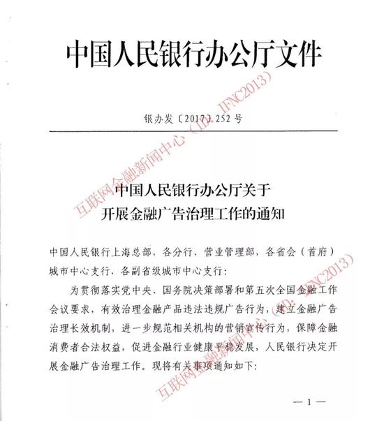 下附《中国人民银行办公厅关于开展金融广告治理工作的通知》全文