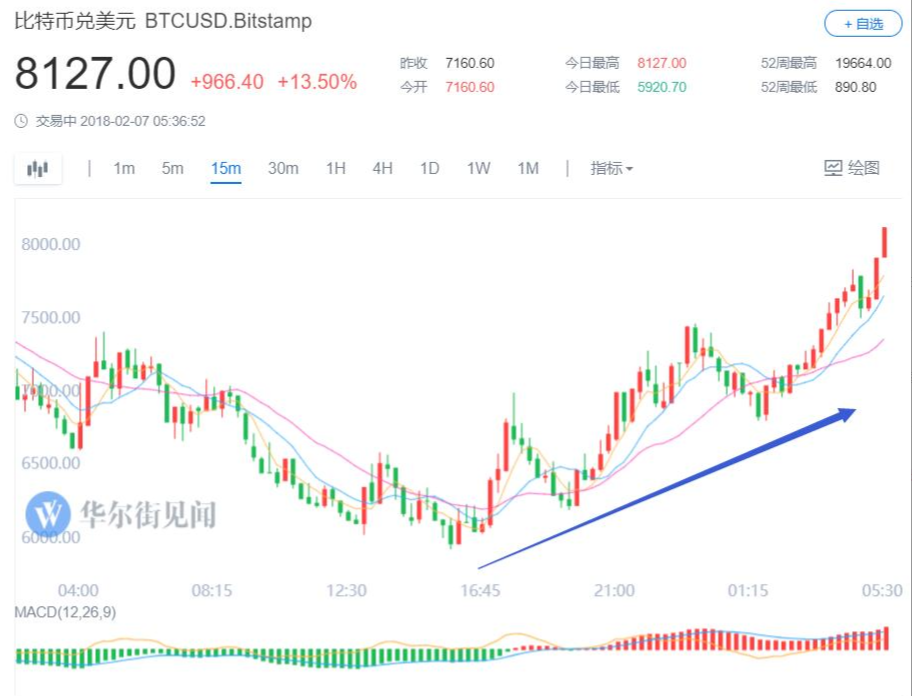 交易平台Bitstamp数据显示,北京时间6日15点45分左右,比特币跌破6000美元,7日截至更新回到8000美元上方,最近24小时累涨逾13%。