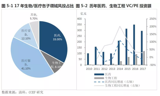 美国作为当今全球科技最发达的国家,一直引领全球科技的发展,而以风投为代表的资本市场资金流向一直是科技商业化应用的风向标,当前美国风投主要以软件产业、生物/医疗产业为主,2017年流向这两大产业的资金分别占风投资金总量的38.3%、18.8%。在技术全球化的背景下,中国通过不断引进、模仿、学习这两大产业的技术,利用后发追赶优势紧跟全球发展方向,2017年中国流向软件/互联网产业、生物/医疗产业的资金分别占比26.5%、7.3%,在结构已体现出相似的趋势,代表未来产业发展热点的软件/互联网、生物/医疗产业依旧是国内外风投资金持续流入的热点。