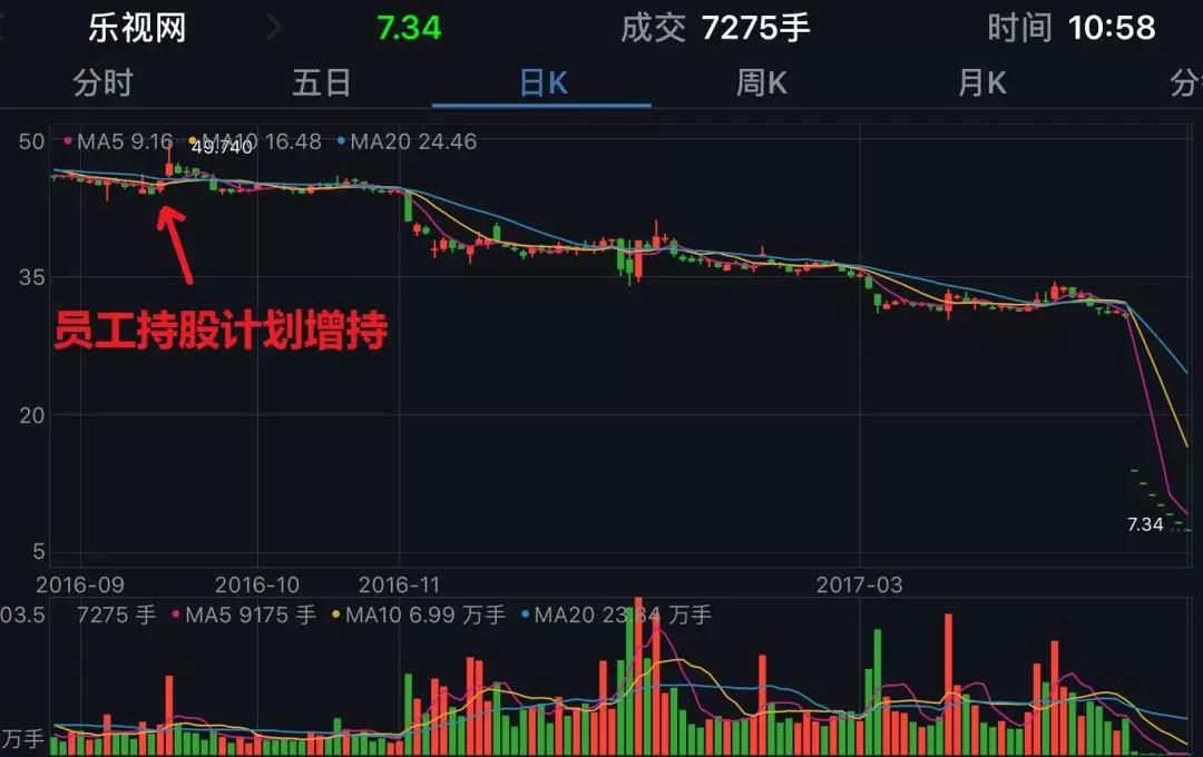 乐视网股价从2016年11月开始下跌,并于2017年4月开始停牌到2018年1月,由于这一持股计划到2017年9月下旬才解禁,期间不能卖出,只有等2018年1月份乐视网复牌后才能卖。