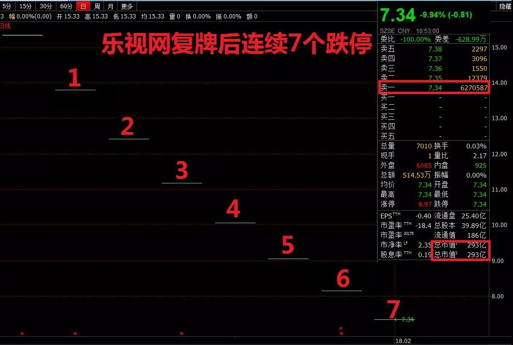 更让人担心的是,乐视网股价仍在连续跌停中,每天任由600万股以上的跌停封盘,目前的1.6亿市值等到打开跌停后,还不知道能有多少!