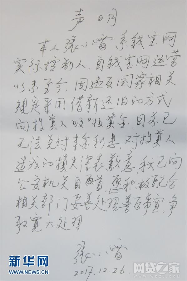 这是张小雷投案时写下的声明(1月14日摄)