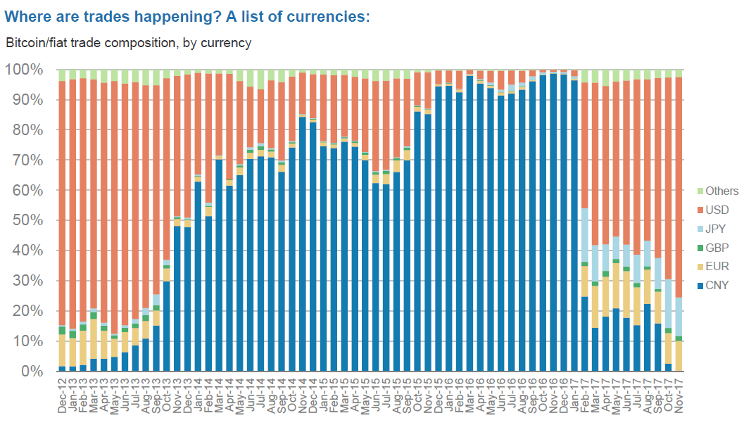 境内比特币交易所关闭后,人民币计价的比特币交易量在全球占比目前已几乎可以忽略不计。