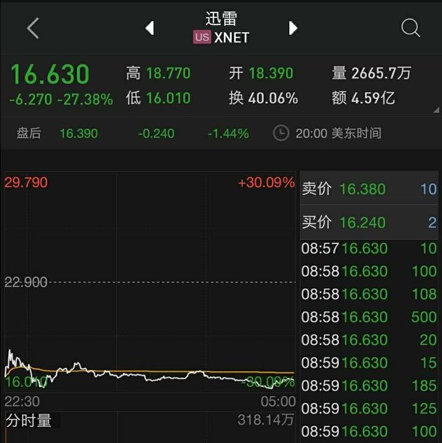 或受此影响,迅雷当日股价暴跌逾27%。