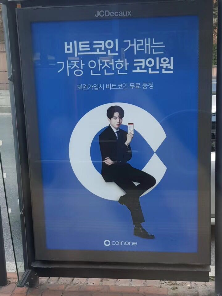 韩国街边公交站台,李栋旭代言Coinone的广告