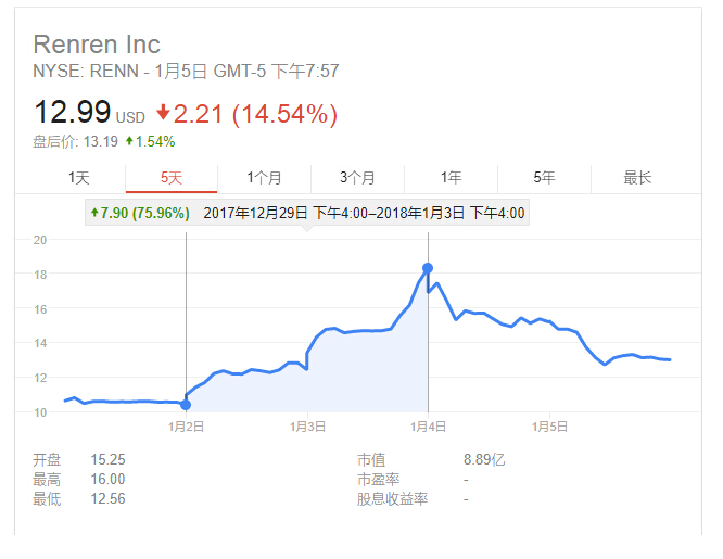 这一消息传出,人人公司的股价涨超52周高点,两日累计涨幅约76%。