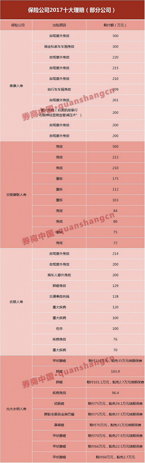 转载请标注:信息网——大揭秘!保险公司2017年十大理赔都在这里了