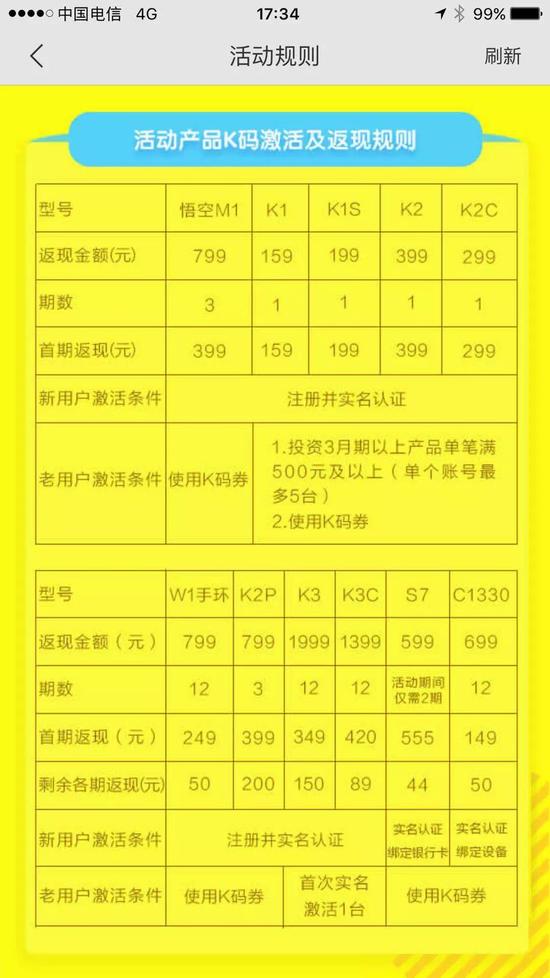 目前,斐讯对实名制激活k码的数量和提现周期提高了门槛。提现的金额越高,返还的周期就越长。399元的k2码提现周期最短,为1个月,1999元的k3码和1399元的k3c码则分12个月返还。这让不少黄牛党不得不通过发展新用户来“接盘”,快速变现。