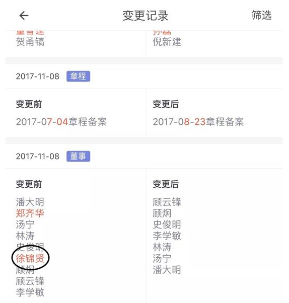 在联璧金融此前推出的一个理财项目中,曾显示资金用于投资“上海迅恒投资咨询有限公司”,而这家公司的三位自然人股东均与斐讯有联系,其中一位名为“徐锦贤”的自然人股东曾是斐讯数据通信技术有限公司的董事。被媒体曝光后,在去年11月的董事变更中,这位董事的名字就悄然消失了。
