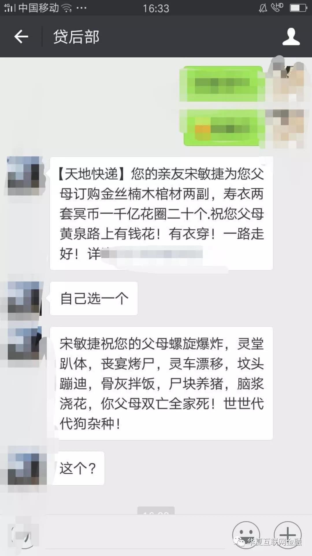 据该借款者透露,他还在贷上钱和借几天上借款过,因为逾期收到了来自各个平台的信息。华夏互金注意到,这些催收信息中含有辱骂等侮辱性语言。