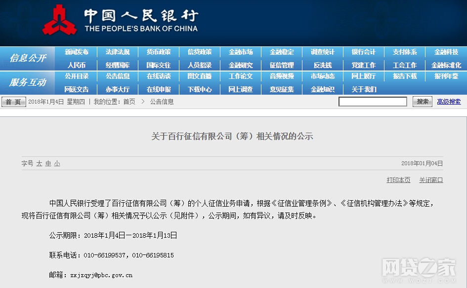 网络整理 2021-03-22 18:21网贷之家讯 2018年1月4日,中国人民银行(下简称“央行”)在其官网发布《关于百行征信有限公司(筹)相关情况的公示》(下简称“公告”)。