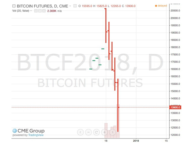 不难发现,这一波下跌开始于12月17日,正是芝加哥商品交易所上线比特币期货的时间。