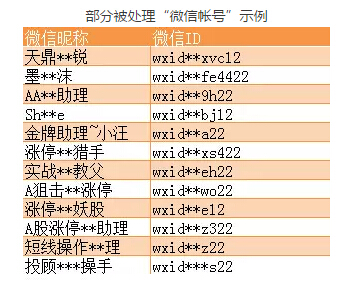 部分被处理“微信帐号”示例: