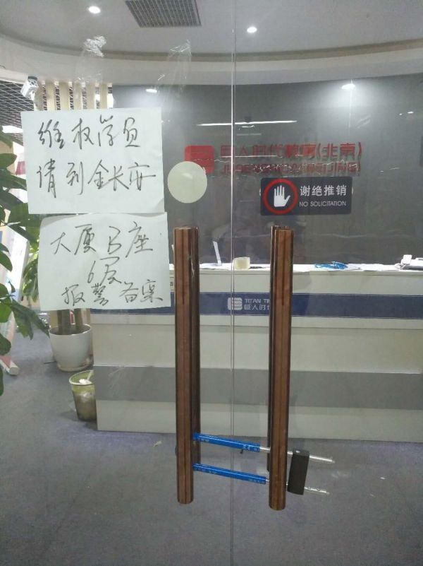 29岁的刘女士在一家游戏公司上班,为了提高学历在网上搜索“自考”相关信息。她发现北京巨人时代教育咨询有限公司(简称“巨人时代”)注册已经10余年,认为比较可靠。今年10月底,她和朋友前往位于建外SOHO一栋写字楼内,分别报了北京理工大学远程教育学院专科和中国人民大学自考本科的培训课程,没想到还未上课就“出事儿了”。