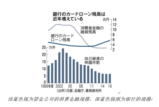 然而,由于实际执法效果欠佳,仍没能遏制“消金三恶”现象。由于90年代日本经济泡沫的破灭,银行已没有足够的资金和能力进入消费信贷市场,非银行消费金融贷款公司扮演了市场的主要角色。