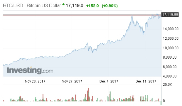韩国即将推出的监管措施虽然阻碍了比特币冲破20000美元,但不可忽视的是,比特币价格今年以来已经上涨了近20倍,在过去3年中上涨近65倍。截至北京时间12月13日中午,全球比特币交易平台价格陆续跌破17000美元,随后徘徊在16500美元左右。