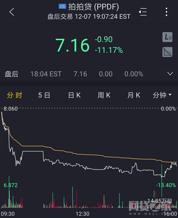 12月7日拍拍贷股价分时走势图,来源:老虎证券