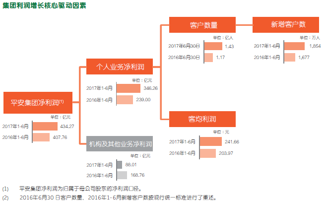 不难想见,软银愿景基金逐步入股各大互联网金融平台、覆盖“平安系”的举措,其实也遵循着同样的逻辑。截止2017年6月30日,平安集团个人客户数达1.43亿,较年初增长9.3%,上半年新增客户1854万,同比增长10.6%,其中,667万来自于集团互联网用户。